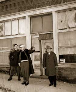 He paid a visit to Victor and posed with his with his son, Lowell Thomas Jr, and Ralph Carr, one-time Colorado governor, in front of the vacant Record building.
